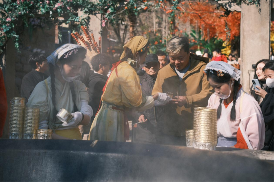 对于一座地处乡村的山岳型旅游景区而言,深度发掘“在地文化”并进行创新表达非常重要,红叶柿岩旅游区在这方面富有心得。2025年秋冬,红叶柿岩迎合游客需求,并结合博山传统鲁菜美食优势,推出“一元酥锅”等“一元系列”,将声名远播的博山美食变成旅游吸引物,将博山风味化为与游客的情感纽带,一举月销超五万份。还就此引爆“柿岩烟火节”,把乡味市集、NPC等元素一齐转化为体验经济。发掘“在地文化”进一步凸显景区所占据的“地利”。